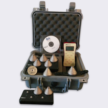 A noise dosimeter Kit with 10 doseBadges and accessories. This kit has been used for demonstration and hire purposes and is in good condition. A few marks can be expected on the Reader and doseBadges, but no serious damage.