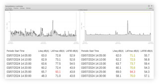 Your noise reports can be daily, weekly, monthly or over any custom period you choose. The reports show the sound levels in a chart or in a table.